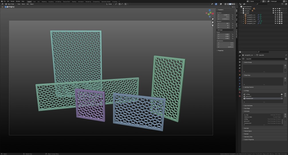Each of the Screen has seperate UVs & Material applied for the frame & the jali elements. The UVs were procedurally generated.