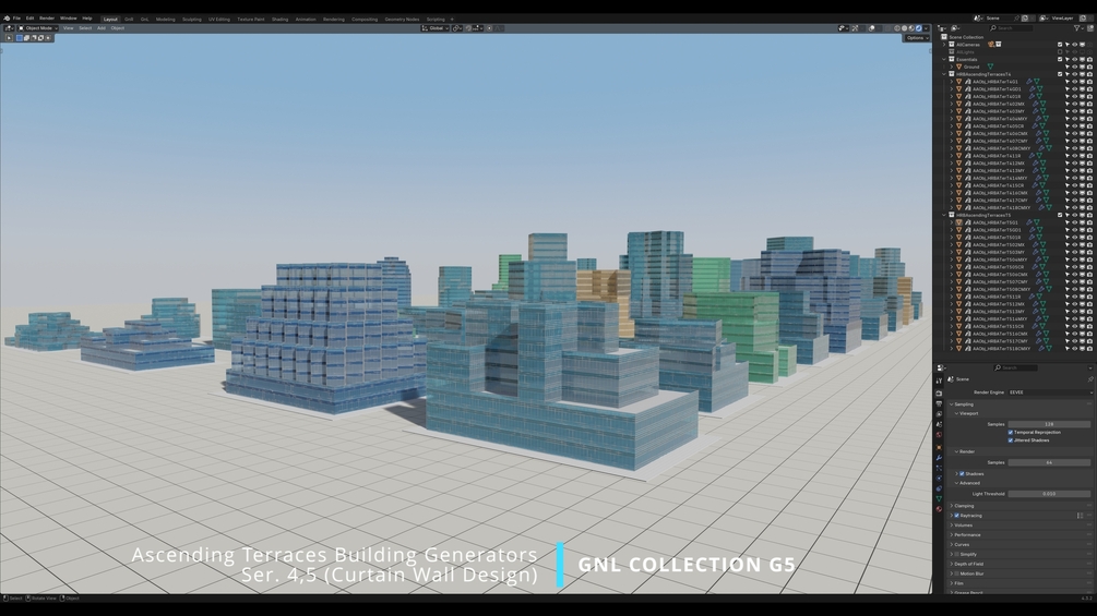 Ascending Terraces High-Rise Building Generators (Curtain Wall Design) - a set of 90 unique Generator Asset NodeGroups to generate infinite variations of Buildings.